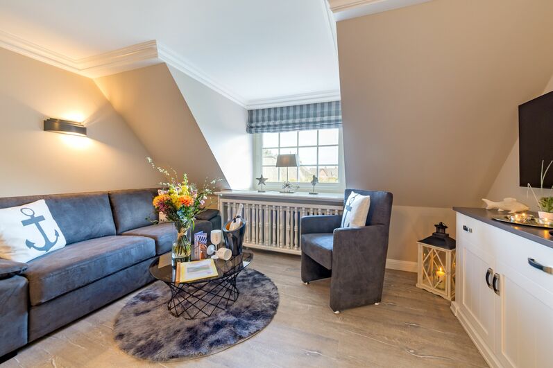 Wenn Sie aus dem Fenster schauen, blicken Sie in den traumhaften Garten. Dieser sehr gepflegte Gemeinschaftsgarten wartet mit gemütlichen Sitzgruppen und etlichen Strandkörben auf Sie. Er wurde nach den Feng Shui Prinzipien angelegt und ist wirklich etwas ganz besonderes. Das hübsche Friesenhaus liegt in zentraler, aber ruhiger Lage, die berühmte Whiskymeile ist nur einen Katzensprung entfernt.