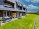 Im Erdgeschoss befindet sich das helle Wohn- und Esszimmer mit Flachbild TV und Elektrokamin. Von hier aus gelangen Sie direkt auf die Terrasse mit kleinem Meerblick. Ein Strandkorb und moderne Gartenmöbel sind selbstverständlich ebenfalls vorhanden.